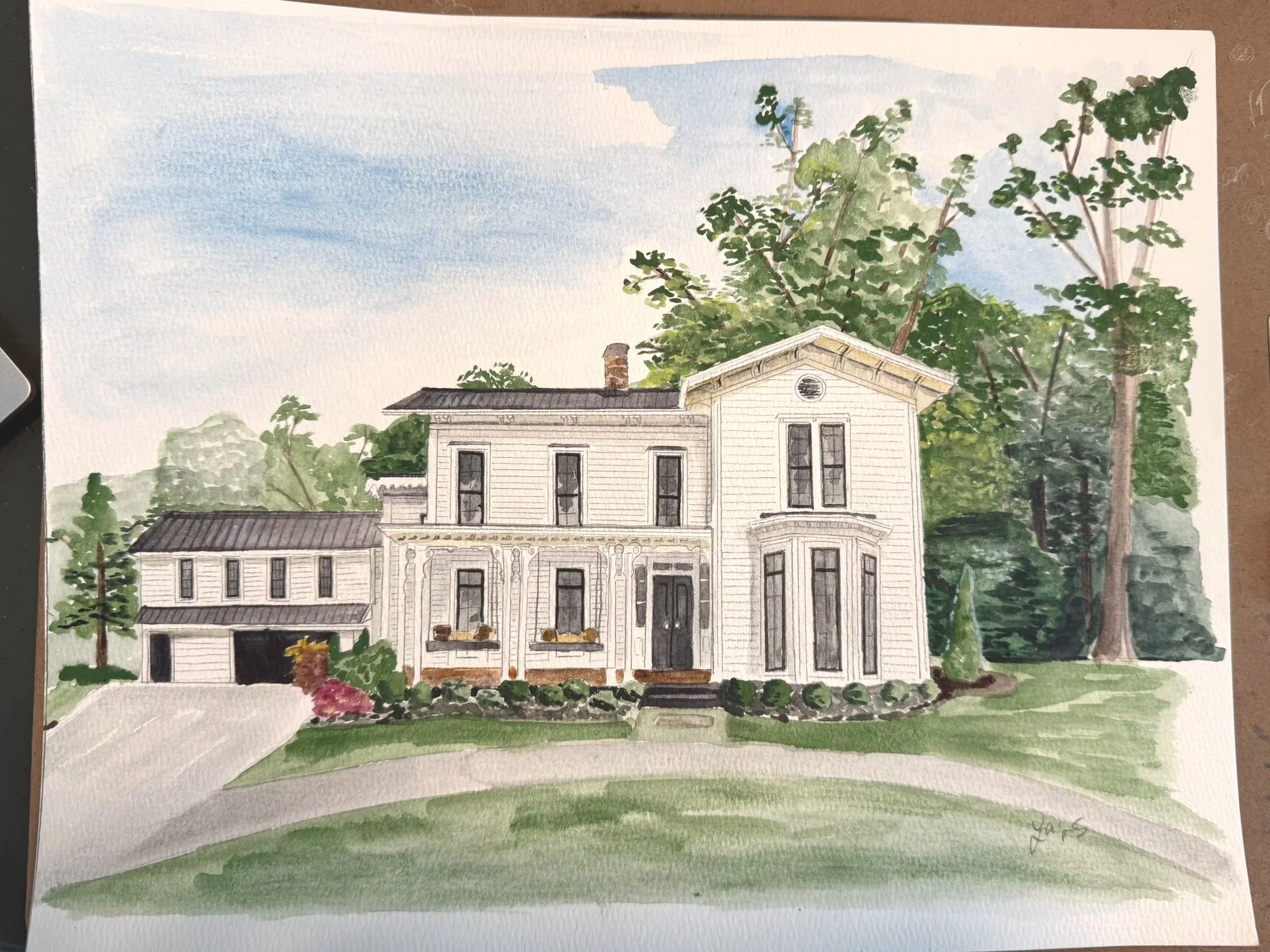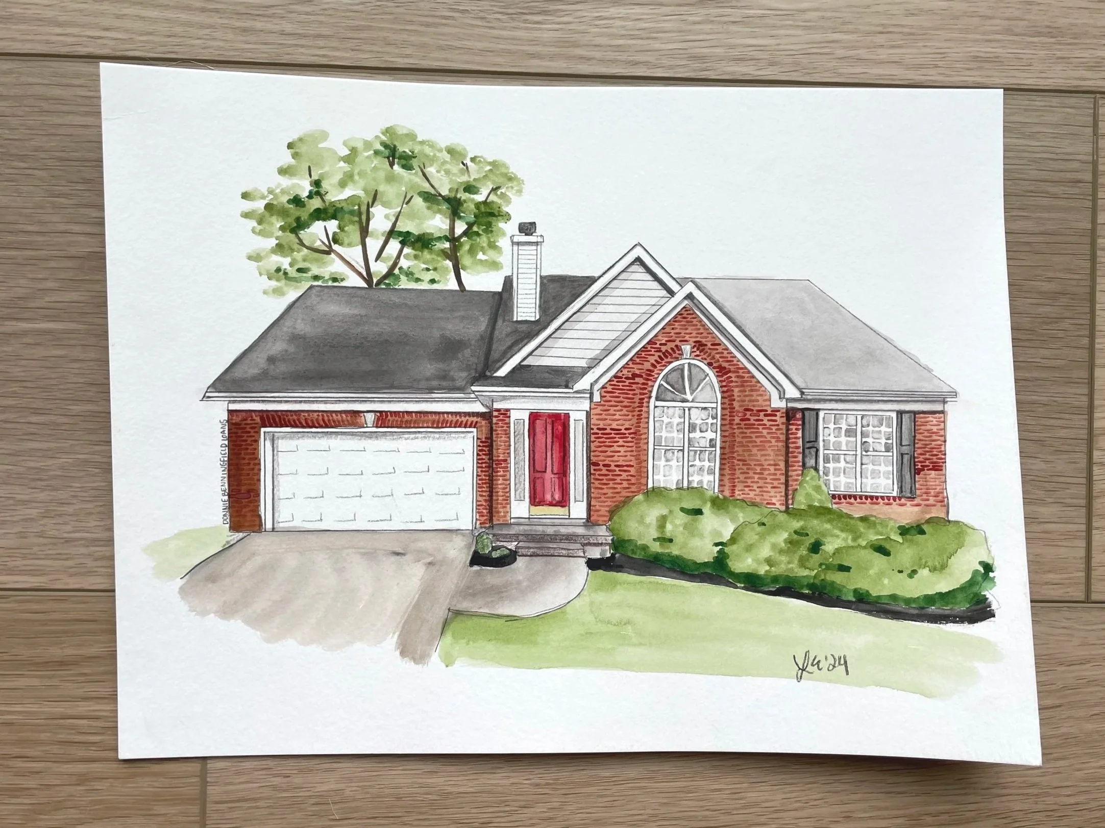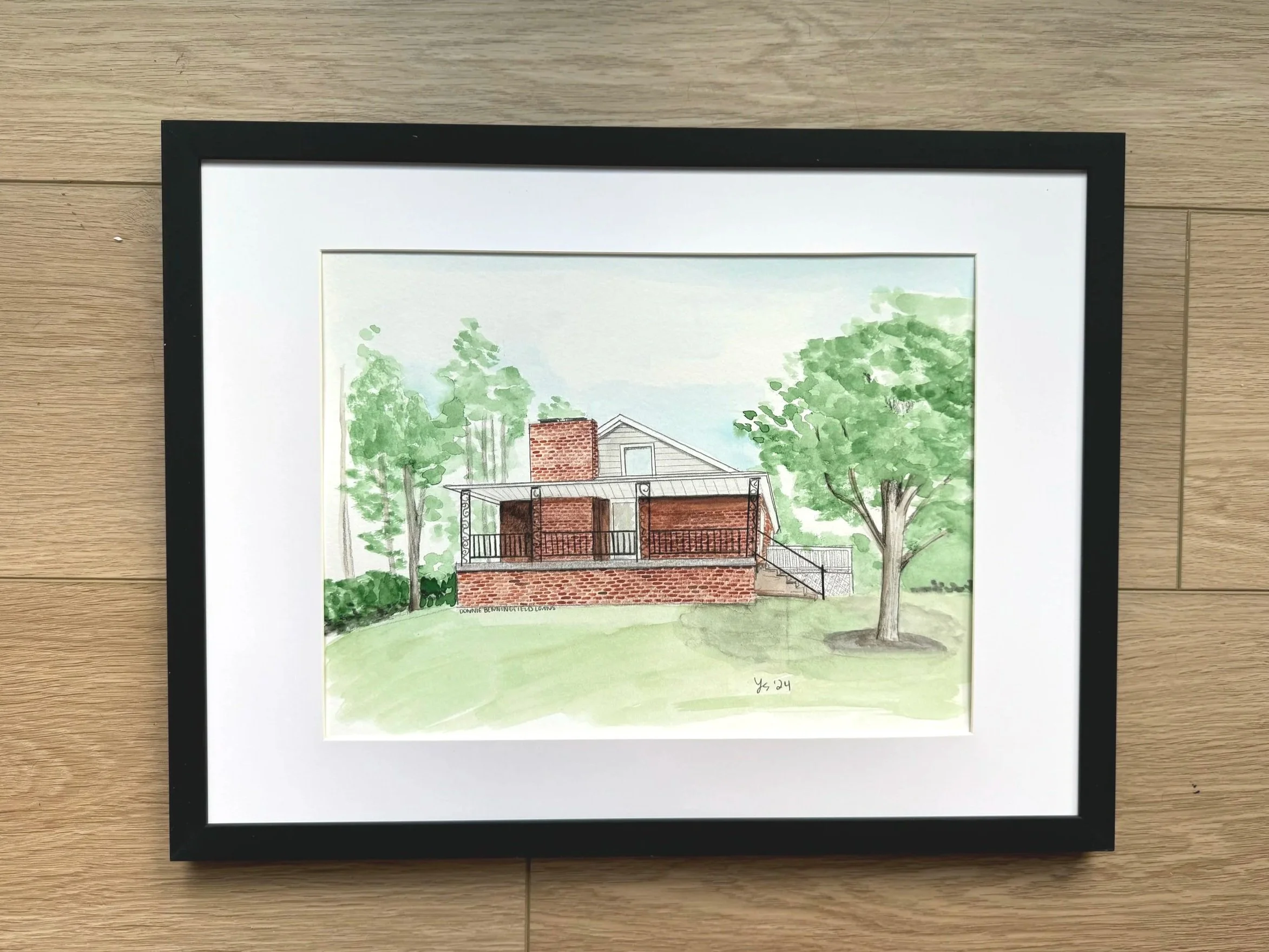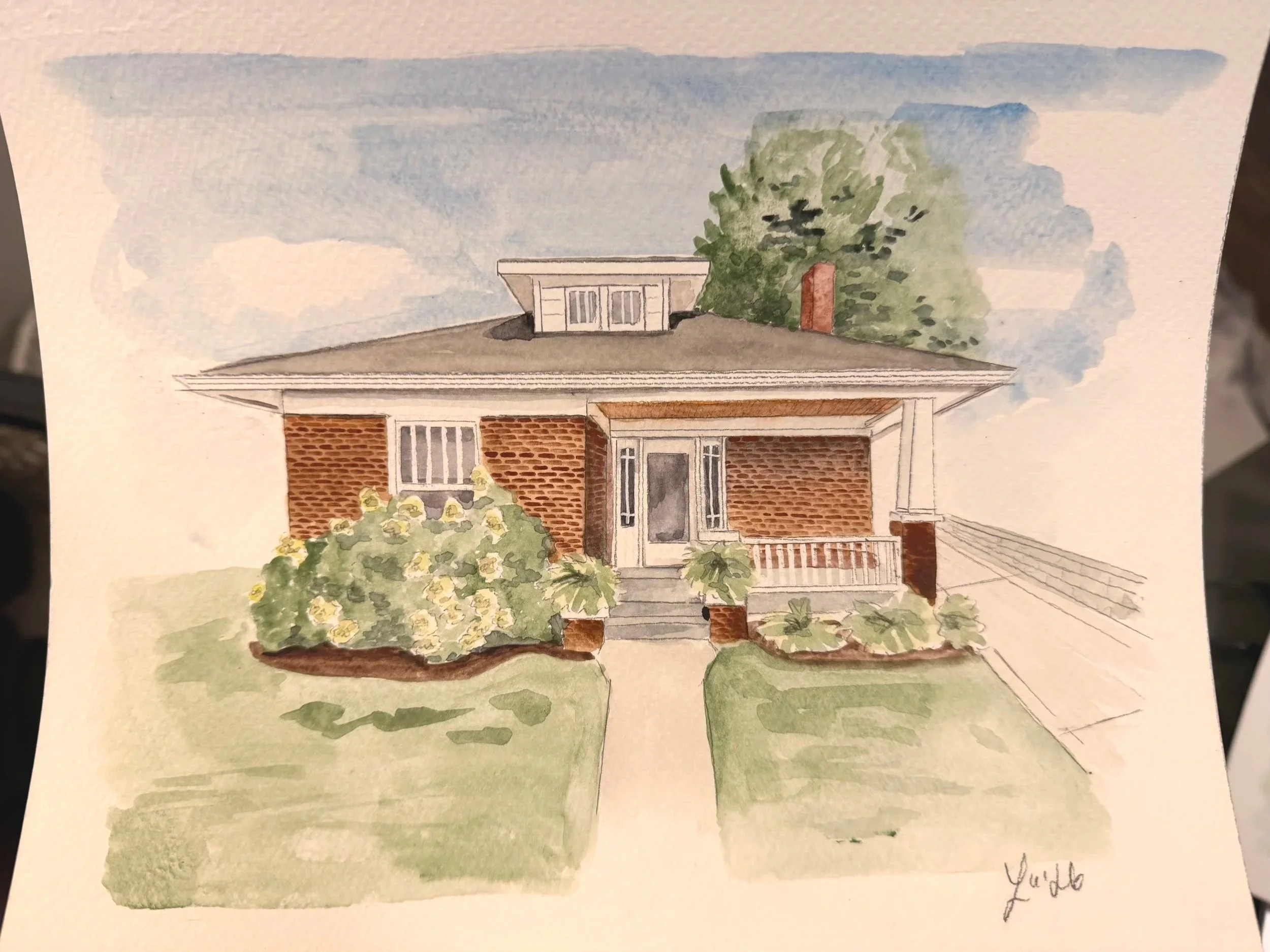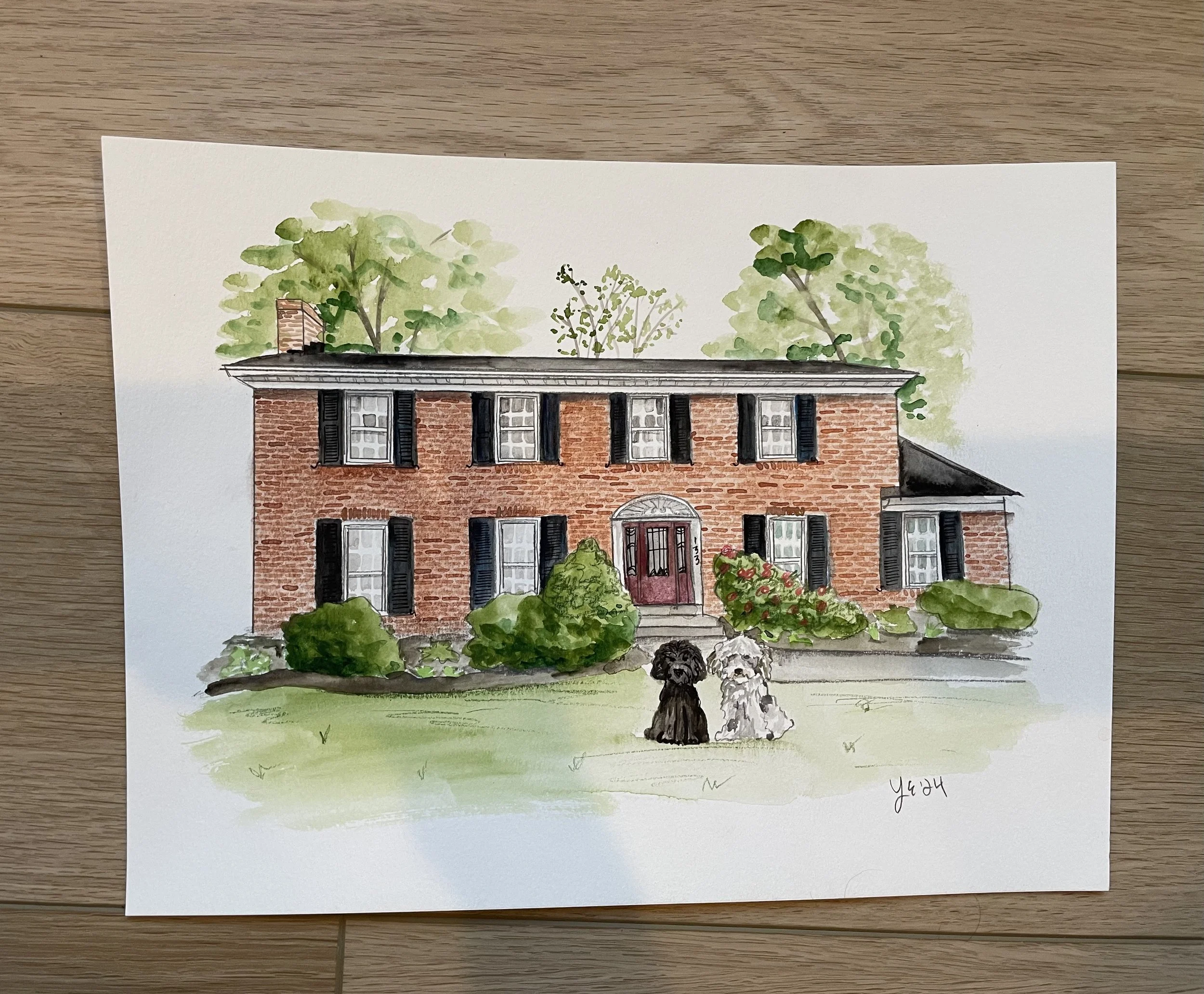 Home portraits on watercolor paper, size of choosing with free Shipping