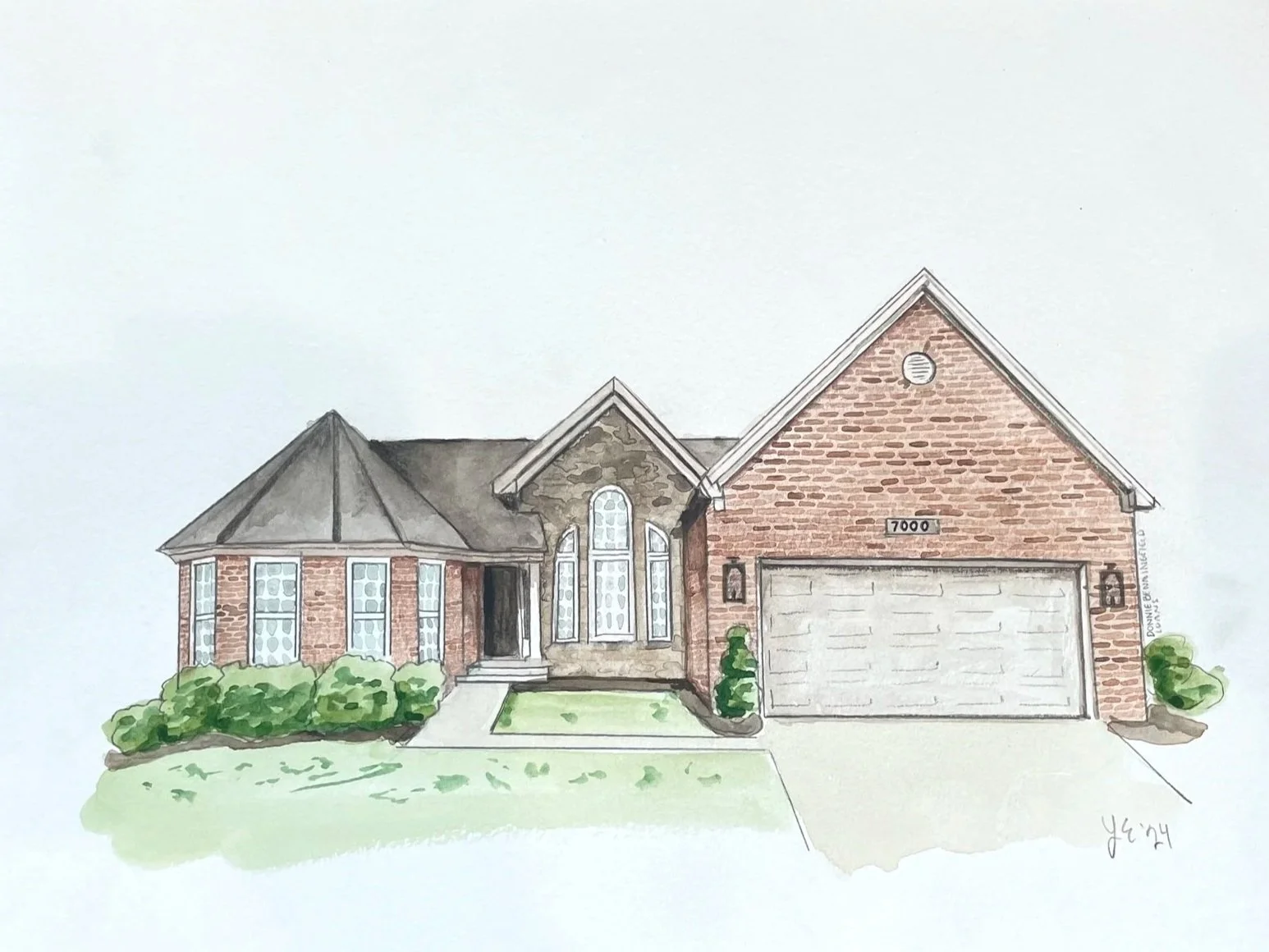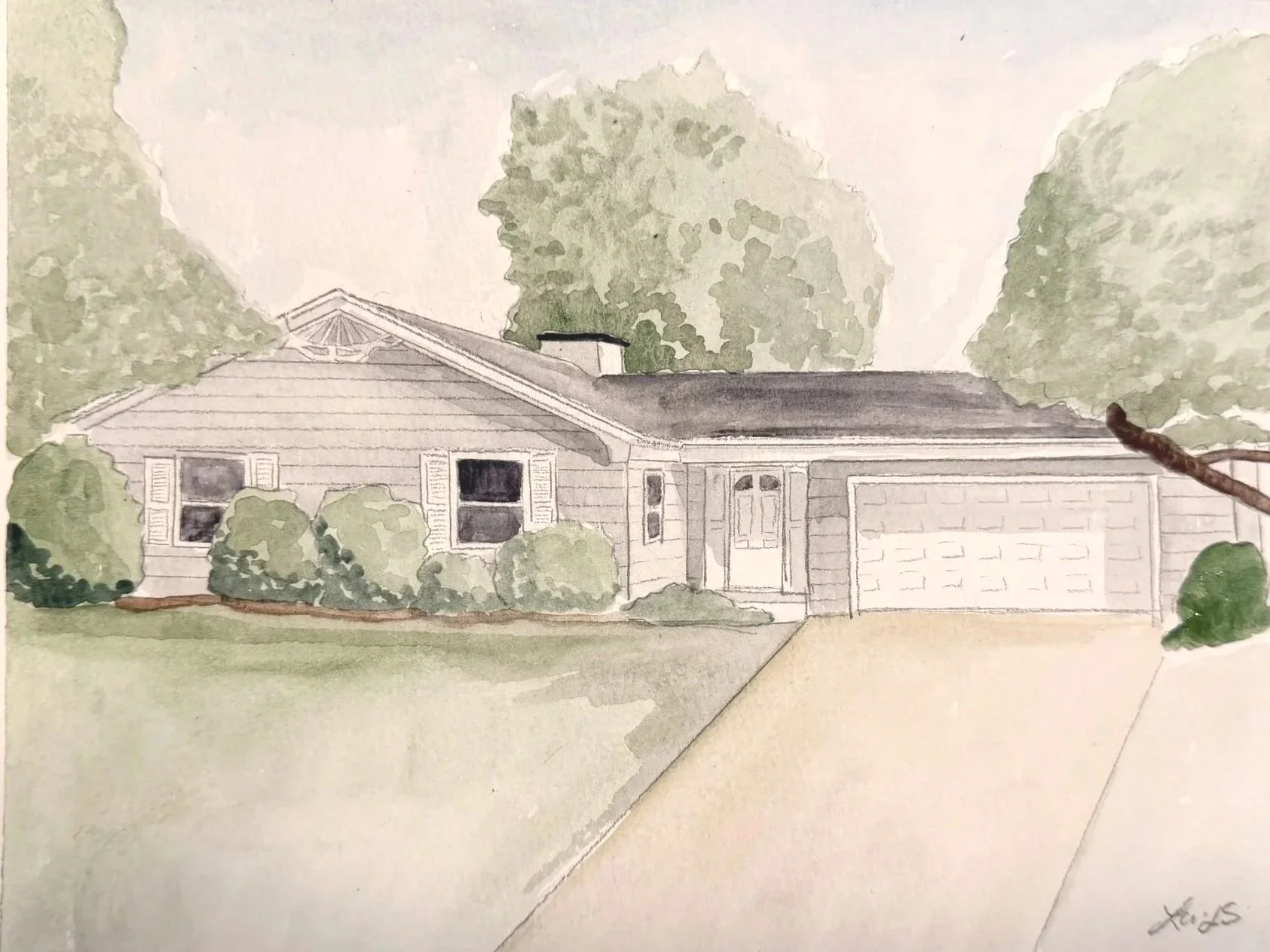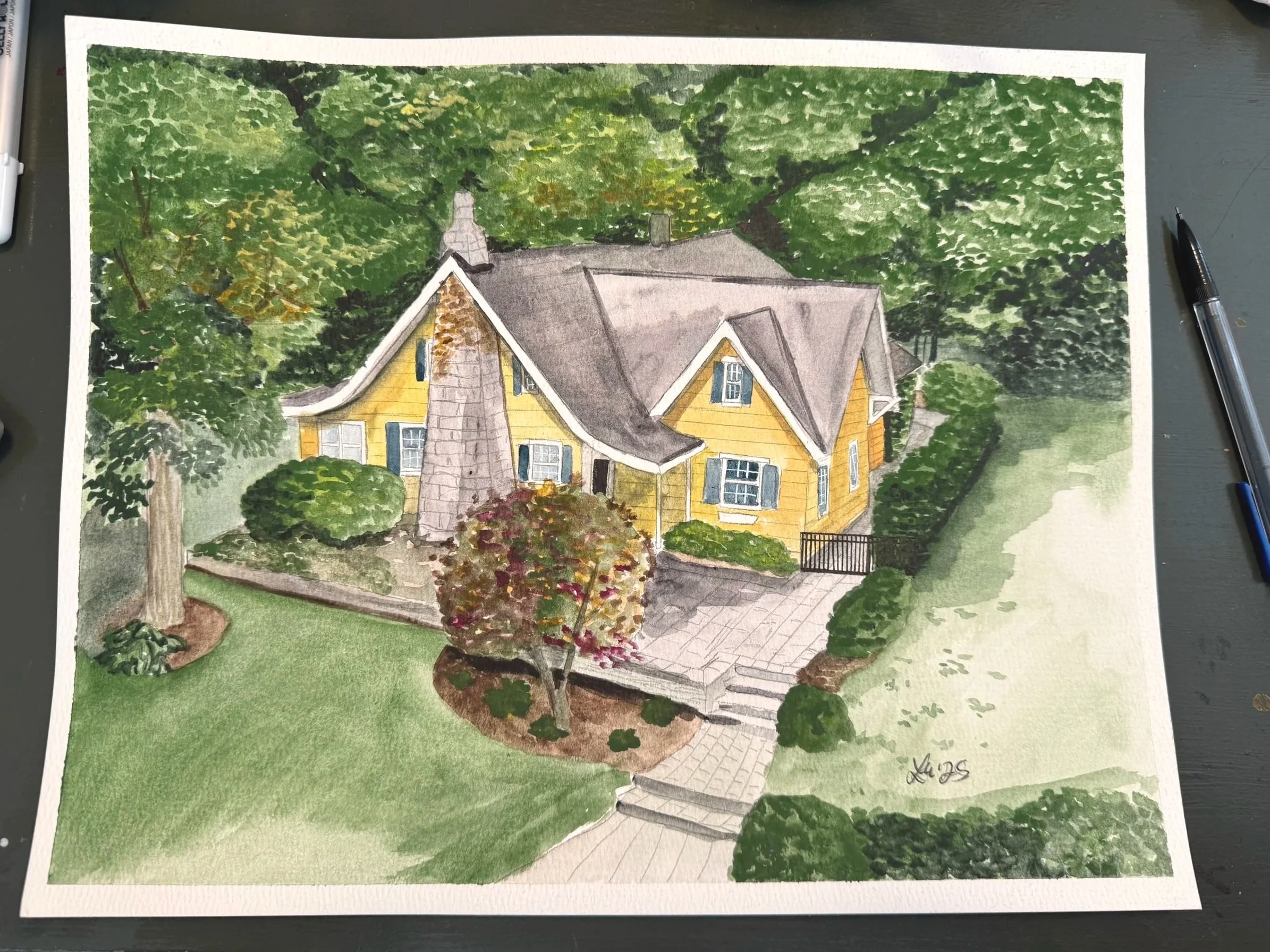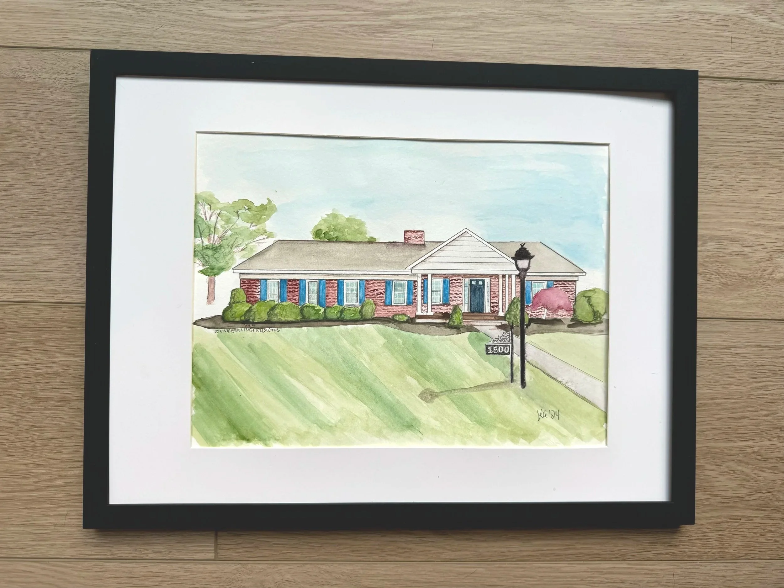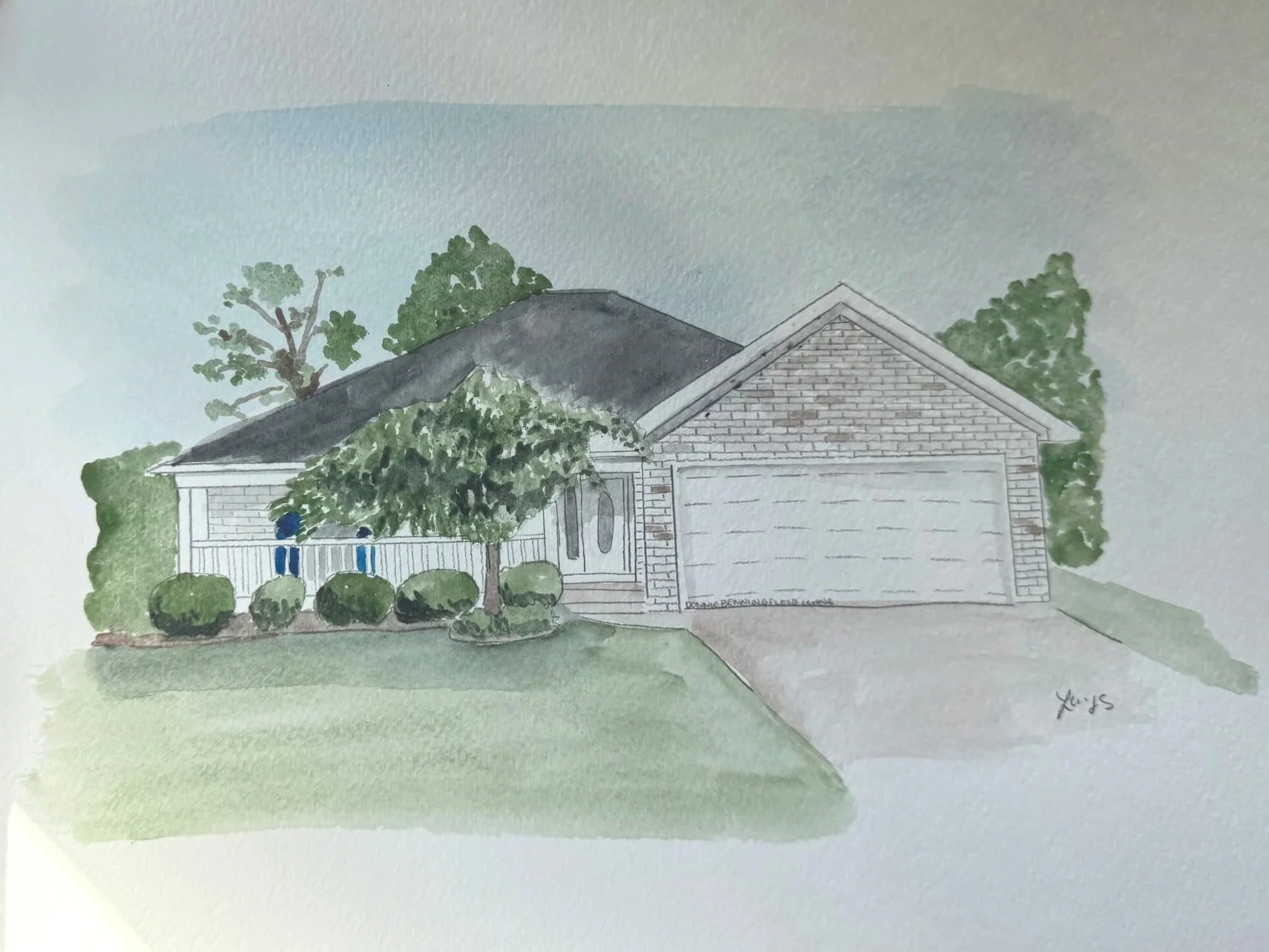 Home portraits on watercolor paper, size of choosing with free Shipping