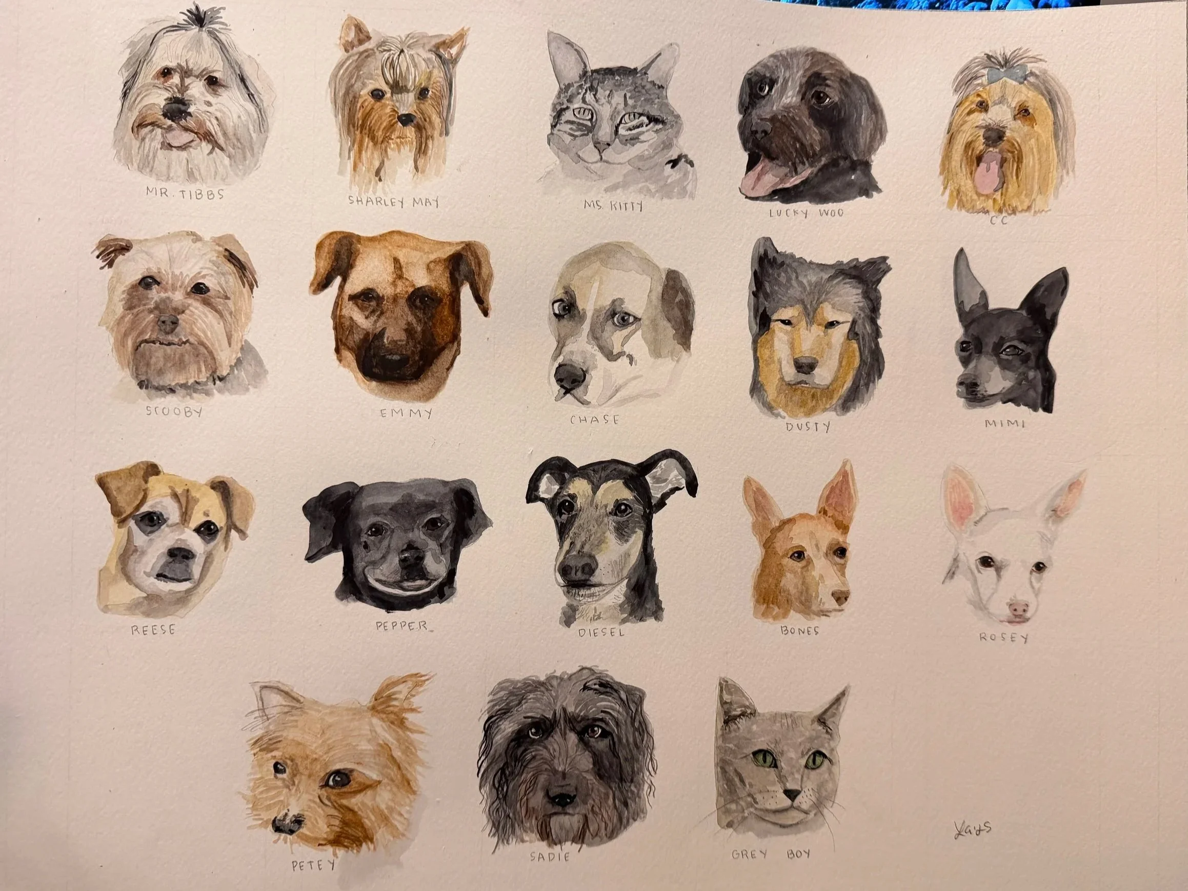 Pet Portraits- on watercolor paper, size of choosing with free Shipping